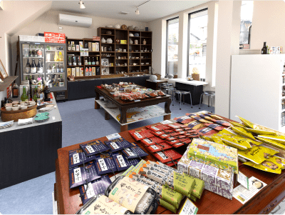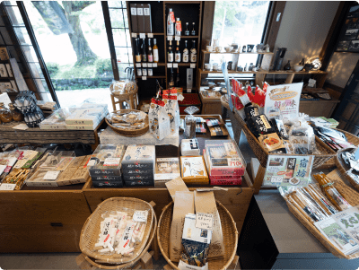 坂本土産には、鶴喜そば製菓の名物そばぼうろ、鮒寿司で有名な阪本屋のあゆの佃煮や、特産のえび豆など、多種多数取りそろえております。