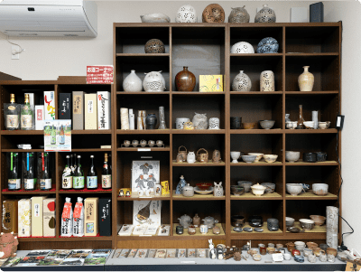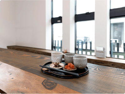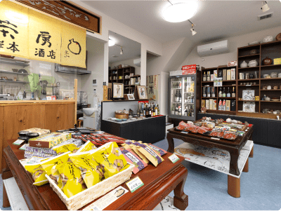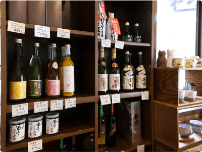角打ちコーナーで、近江の地酒を中心に、店主セレクトのお酒を気ままに呑み比べ。