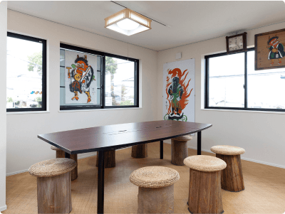 四代目高橋松山師に師事した、岸本栗山の描く大津絵「藤娘」や「鬼の寒念仏」が、出迎えてくれます。