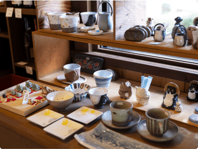 店主が手ずから焼き上げた「日吉焼」のカップで、ご提供します。